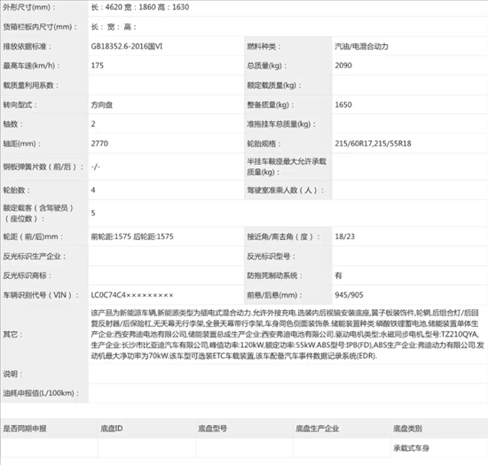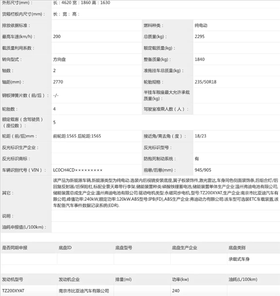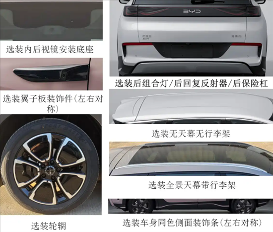 车身尺寸上,新车长宽高均为4620mm*1860mm*1630mm,轴距2770mm,尺寸较老款EV车型更大,小于老款DM-i车型;尾部采用全新尾灯样式,搭配优化后的后包围,视觉效果更精致。